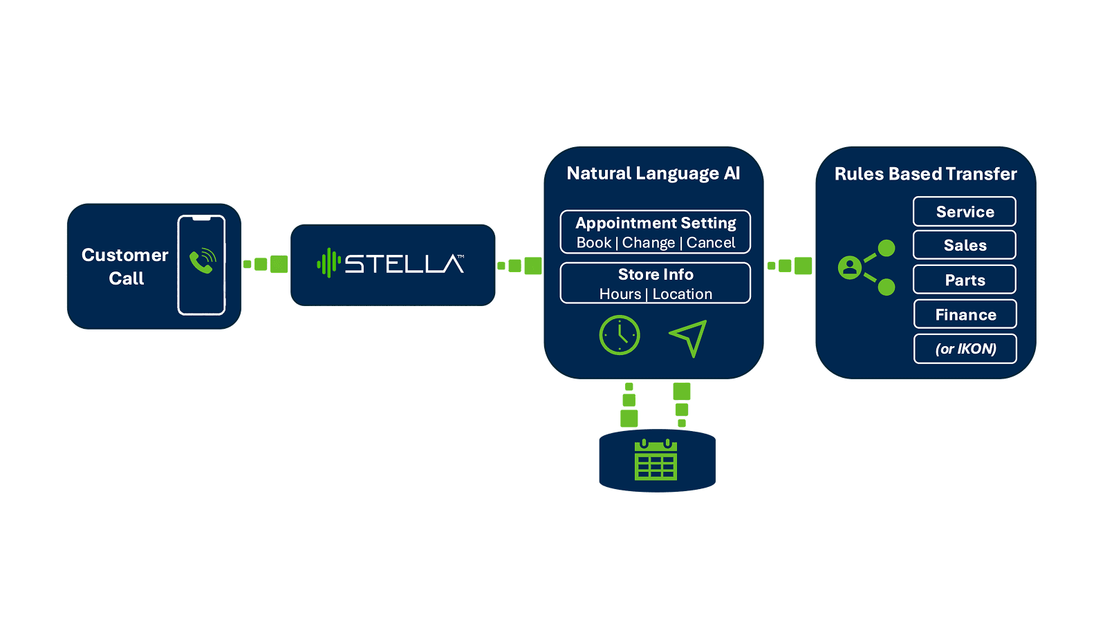 I worked with a third-party AI conversation partner (Stella AI) to automate this flow end-to-end. The AI identifies who to call, holds the conversation, checks live scheduling availability from the dealer’s system, and books the appointment automatically. Human agents only step in when an exception needs escalation.