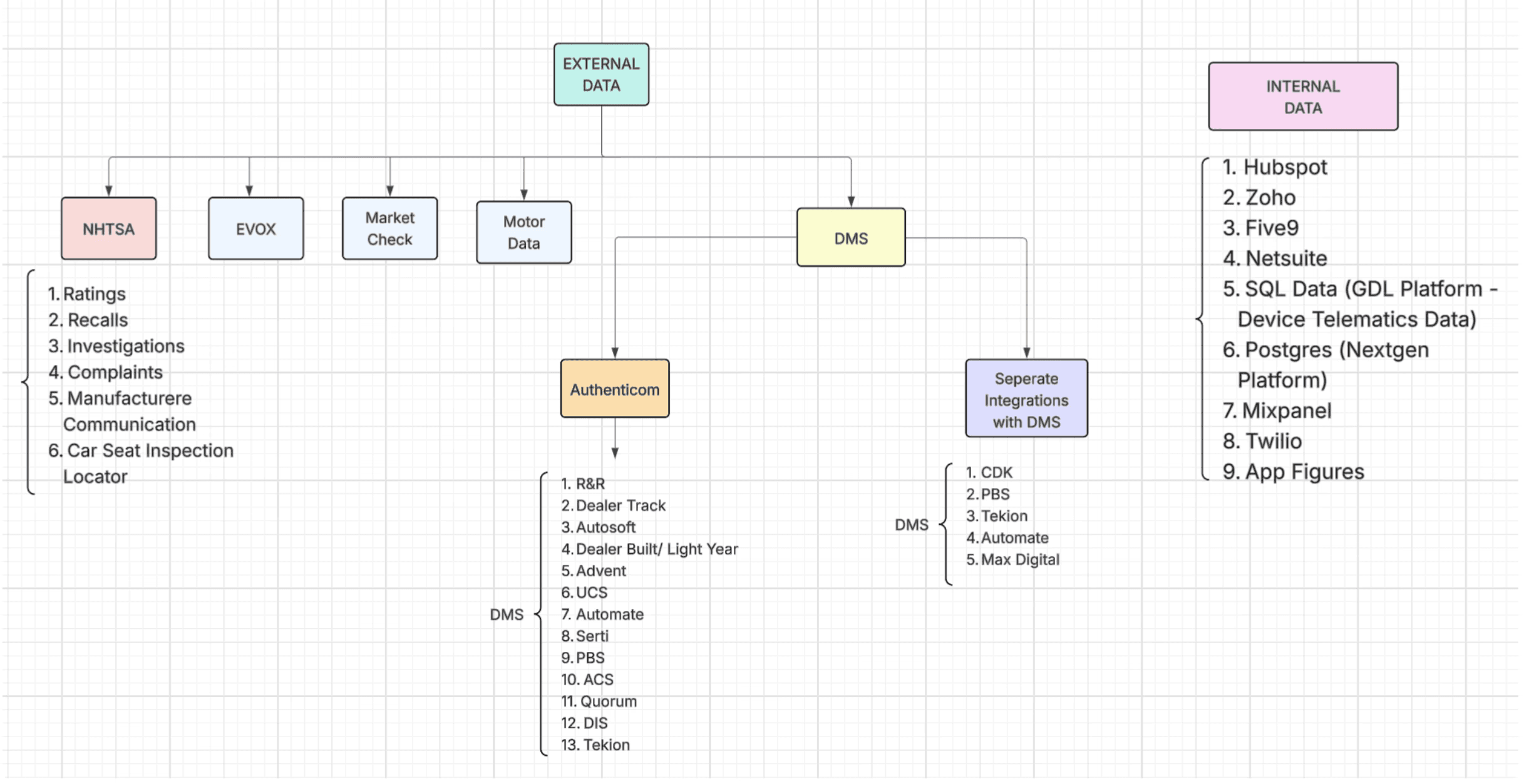 We wanted to extend smarter features for dealers (customer intelligence, richer vehicle context, Smart Marketing, etc.) — but we didn’t actually have a single source of truth on what data we already had, what existed in external integrations, or what each department used day-to-day. Different teams owned different data, had different definitions, and there was no clarity on what data was usable, contractually available, or valuable.